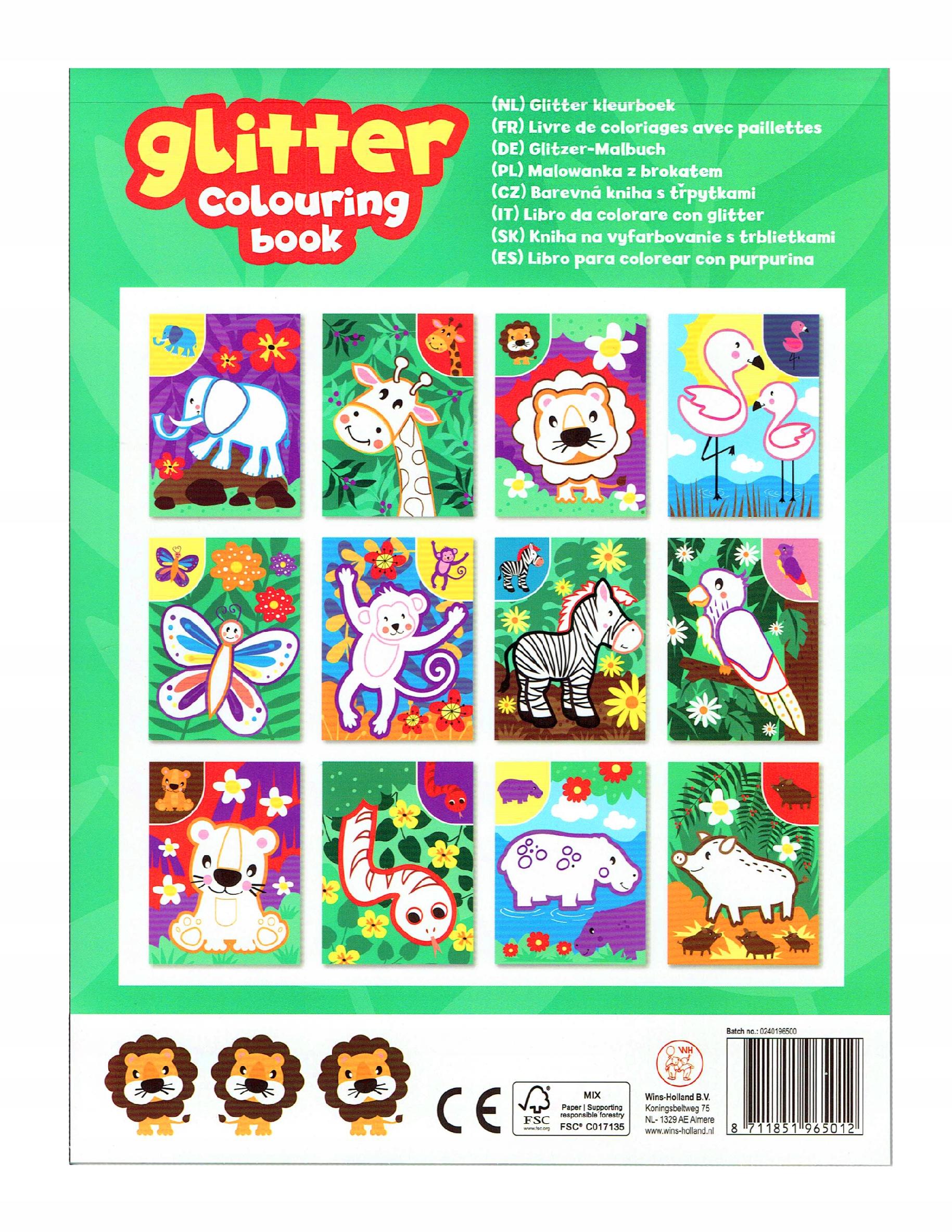 Brokatowa Kolorowanka DŻUNGLA SAFARI z grubymi, błyszczącymi konturami dla dzieci