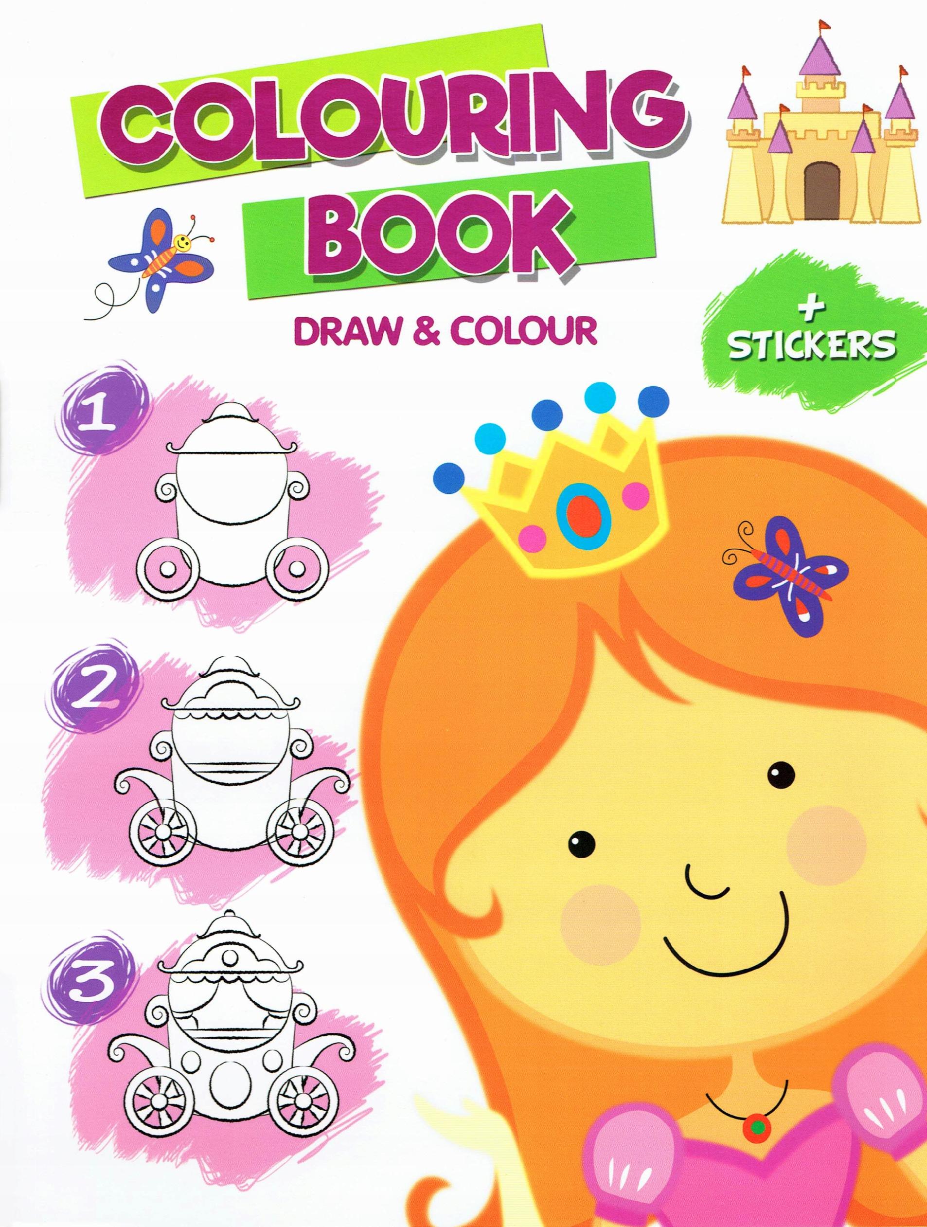 Kolorowanka z Naklejkami RYSOWANIE KROK PO KROKU Nauka Rysowania KSIĘŻNICZKI