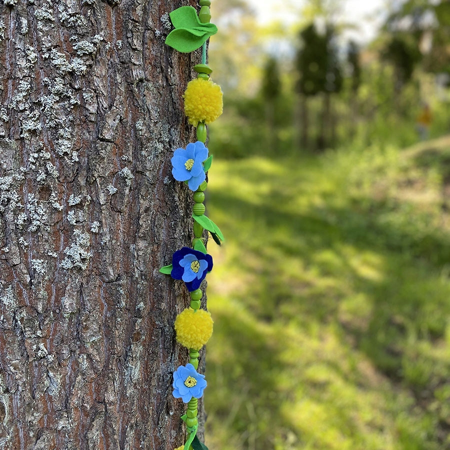 Drewniane koraliki w ślicznych niebieskich i zielonych kolorach w różnych kształtach.