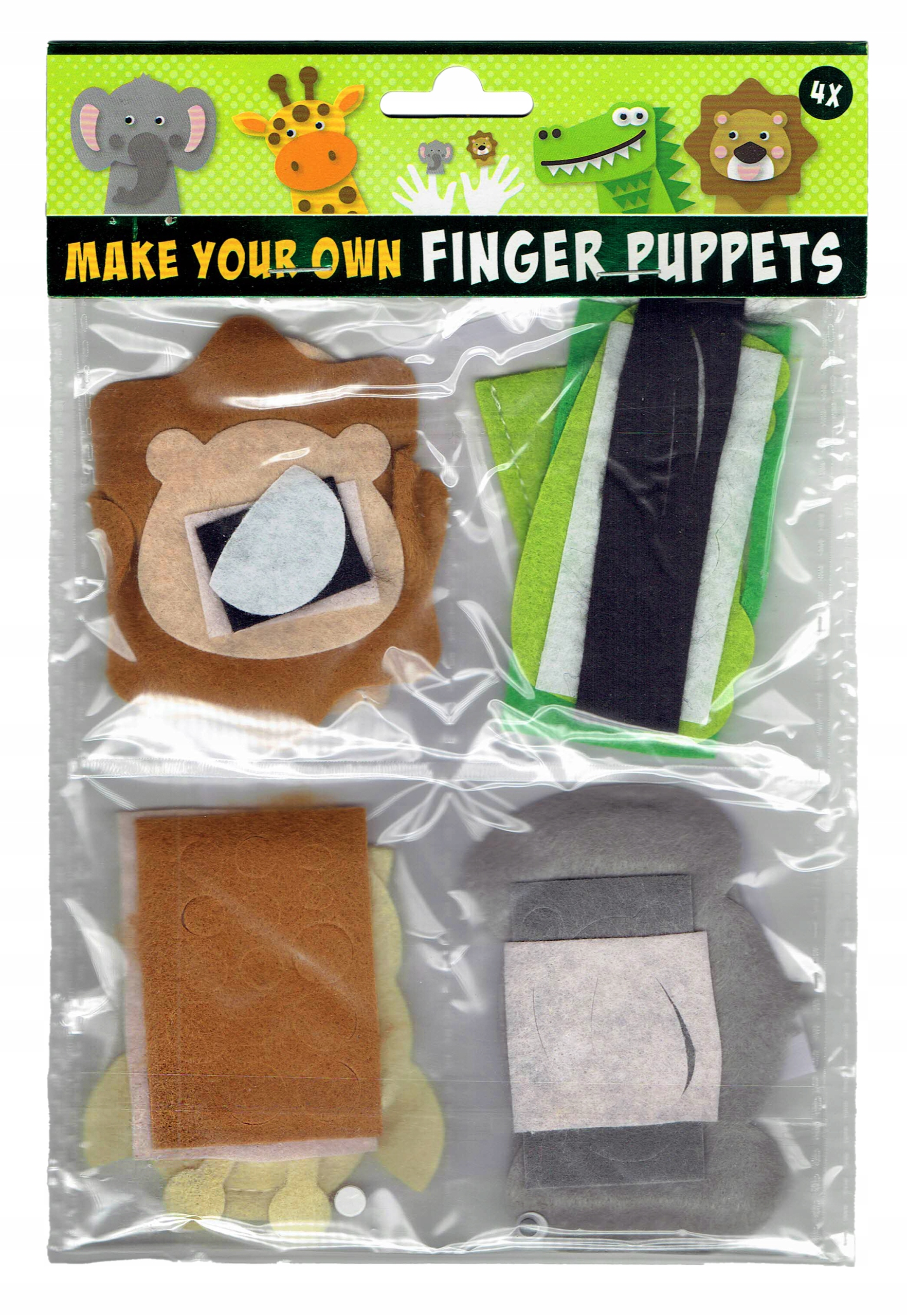 Kukiełki Pacynki Filcowe DIY na Palce – Dzikie Zwierzęta DŻUNGLA ZOO SAFARI (4 szt.)