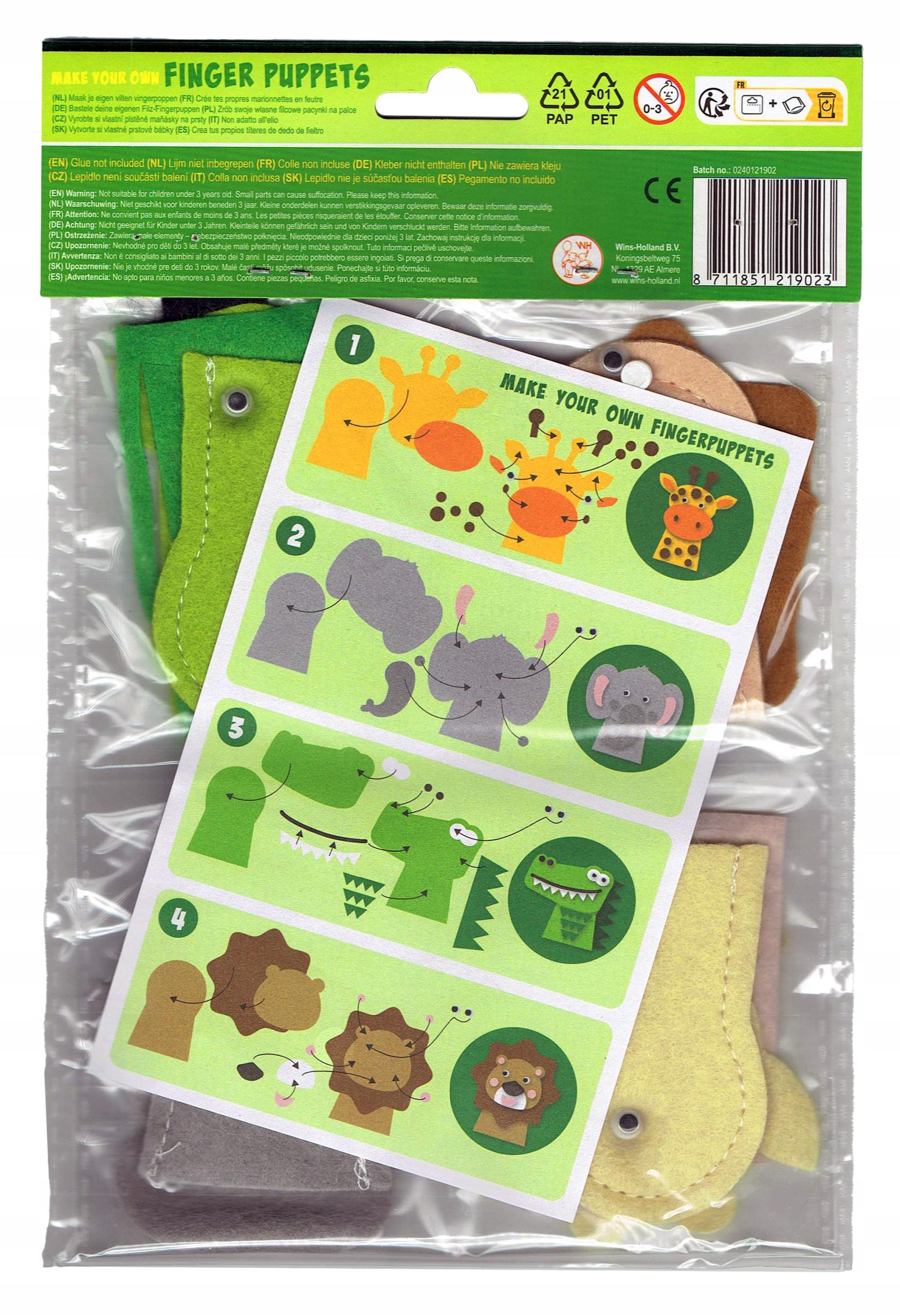 Kukiełki Filcowe SAFARI DŻUNGLA zrób własne pacynki na palce DIY 4 szt