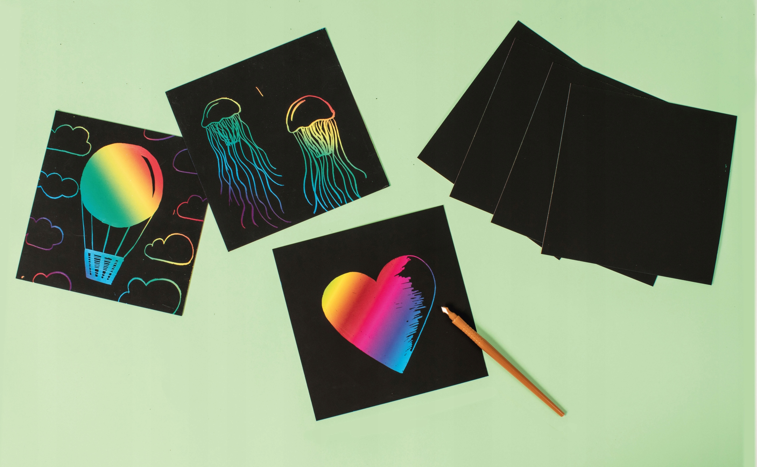Idealna na prezent, do użytku w domu, szkole czy podczas podróży. Twórz unikalne ilustracje i odkrywaj kolory ukryte pod czarną powierzchnią!